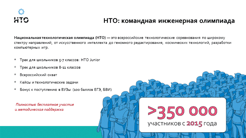 НТО развивает навыки, командную работу, а помимо этого, ещё и баллы при поступлении в топовые вузы страны.